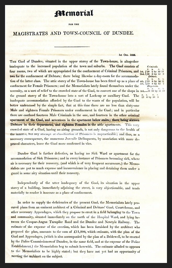 Proceedings Regarding Enlargement of Gaol and Building of New Gaol in Dundee (1st October,1833) ATC-Pr-21(549)(a)
