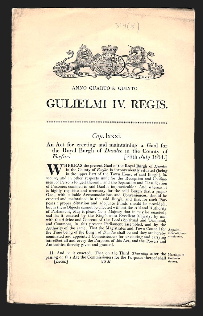 An Act for Erecting a Gaol for Dundee (25th July,1834) L319(12)