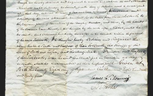 Death Warrant for Alexander Marshall (28th September,1835) ACC9-Bdle-1(ii)
