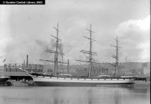 This photograph by Alexander Wilson shows the "Balmoral" on the north side of Dundee Harbour's Camperdown Dock. This three-masted full-rigged ship was built at Liverpool by T. Royden and Sons in 1887 for Macvicar, Marshall and Co., of Liverpool.