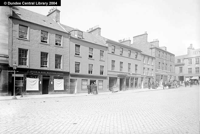 This shows the west side of Crossgate, Cupar. The far right is at the junction with Bonnygate, and the present-day location of the Mercat Cross is just off the right-hand side.