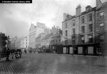 Dundee's Nethergate is seen here looking to the east, with the City Churches among the tress to the left and the towers at the head of Whitehall and Union Streets visible at the left hand side.